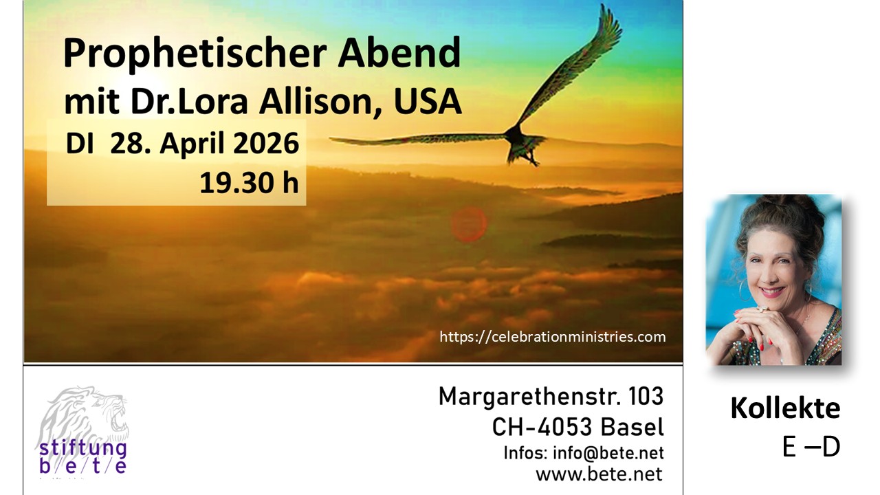 Prophetischer Abend am DI, 28. April, 26, 19.30h mit Dr. Lora Allison